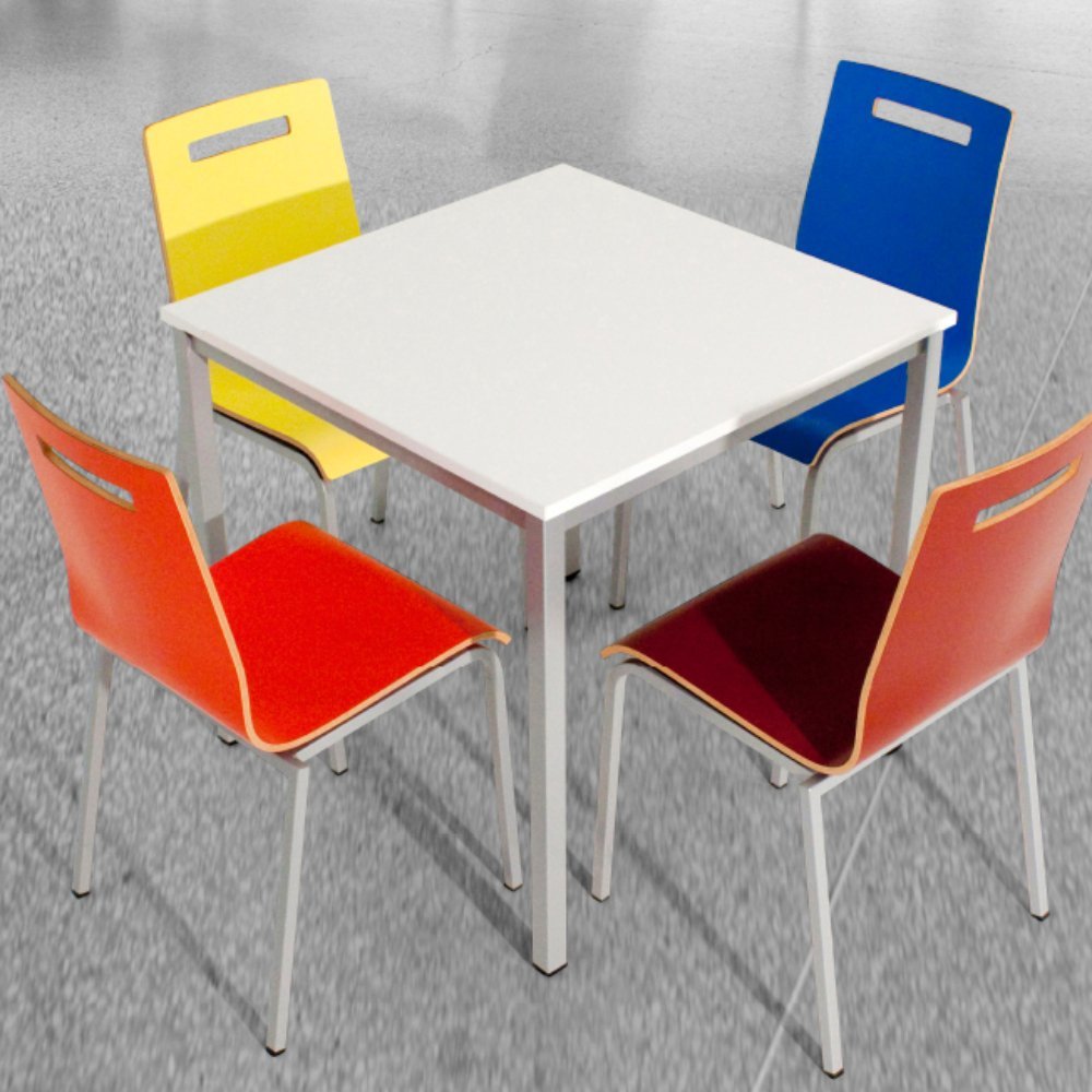 Stoel Oscar is een stevige stoel met een prettig zitcomfort en heeft een ergonomische zitkuip. Deze variant is voorzien van een vierkant of rond 4-poots frame en heeft een kuip in laminaat, keuze uit meer dan 100 kleuren!