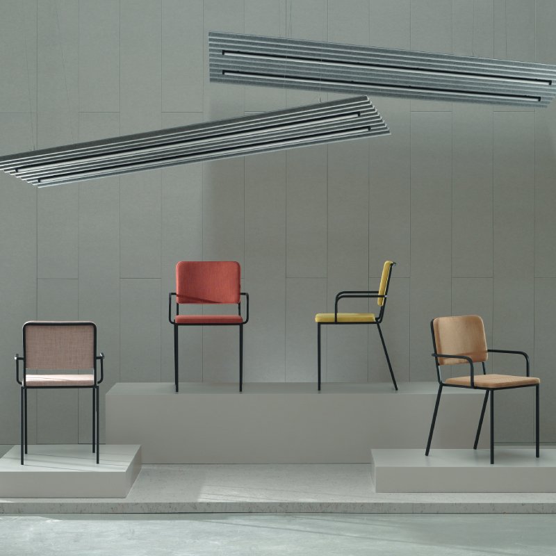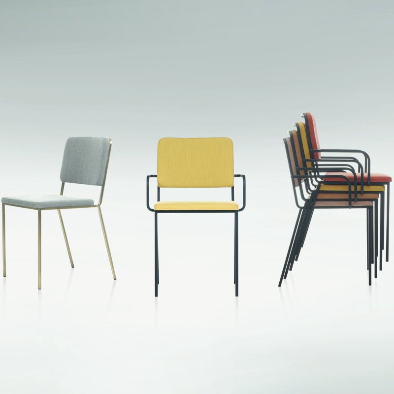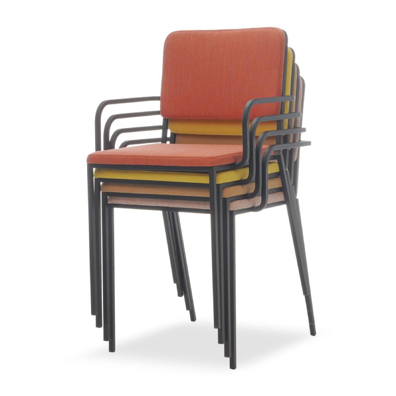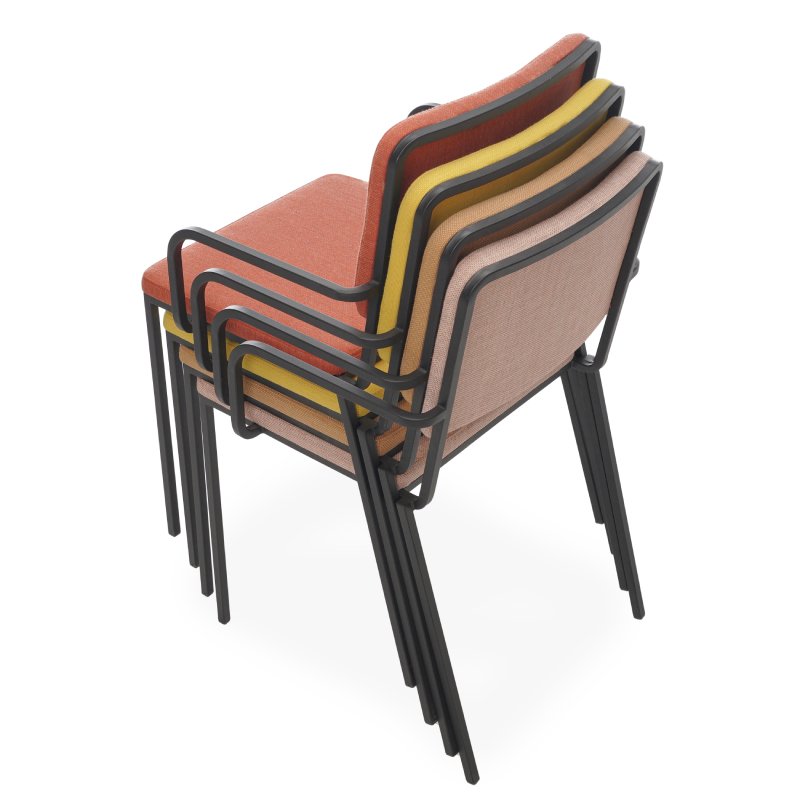Palo is licht in gewicht en stapelbaar voor een flexibele inrichting. Het metalen buizenframe is leverbaar in diverse kleuren, net als de ruime keuze in stofkleuren.