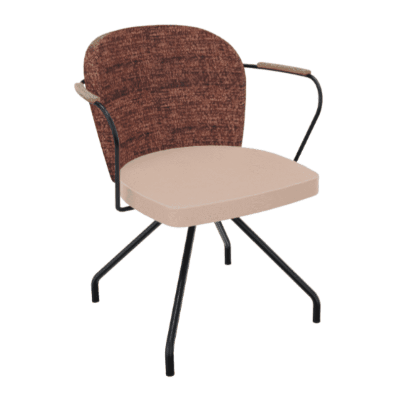 De stoel is voorzien van een solide spinpoot onderstel en is mogelijk met of zonder armleuningen. Als je voor armleuningen kiest is het opdekje standaard van hout in de kleur beuken, afgewerkt met epoxylak.