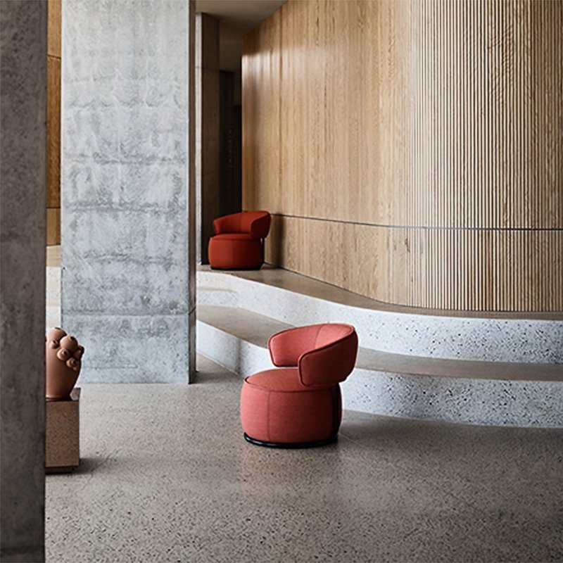 Stoffen stoel Basel is een ruim zittende fauteuil waarbij diverse geometrische vormen samenkomen. Dit zorgt voor een uniek design van zachte en strakke lijnen. De rugleuning van de fauteuil in stof werkt tevens als armleuning en biedt ook enige privacy als u in de stoel zit.