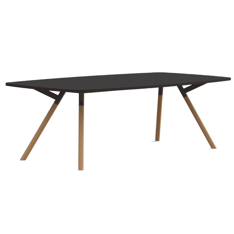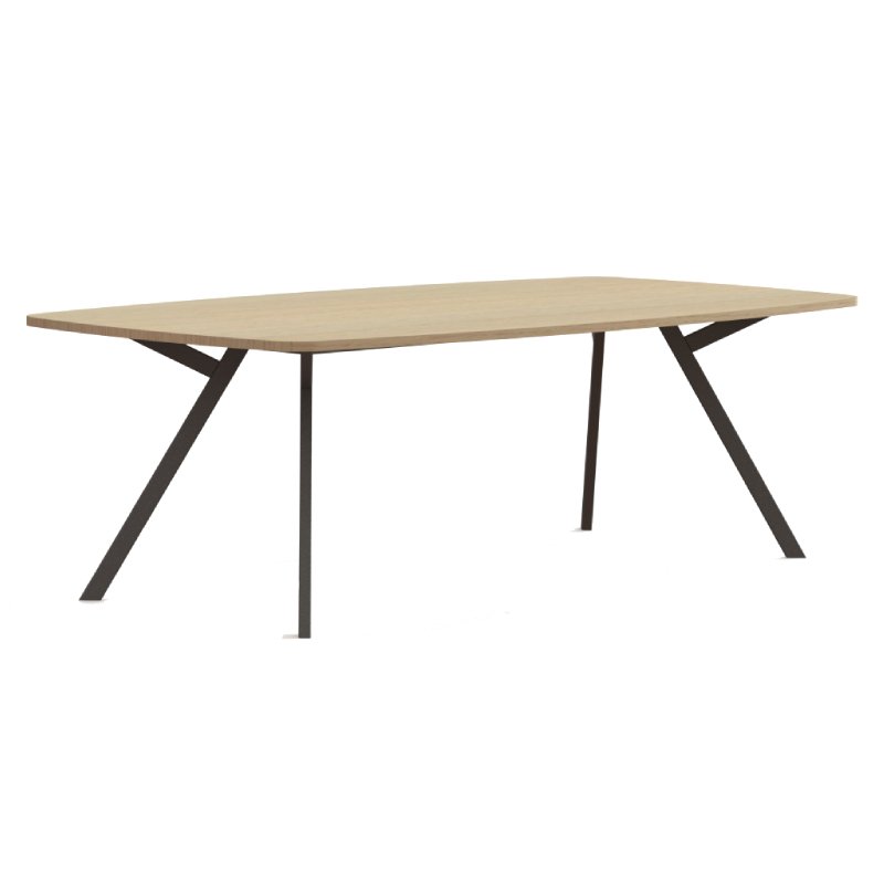 De Bridge tafel is leverbaar met metalen rechthoekige poten 30x50mm, metalen ronde poten Ø50 mm of massief houten ronde poten Ø50 mm.