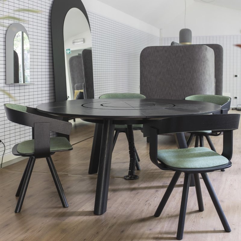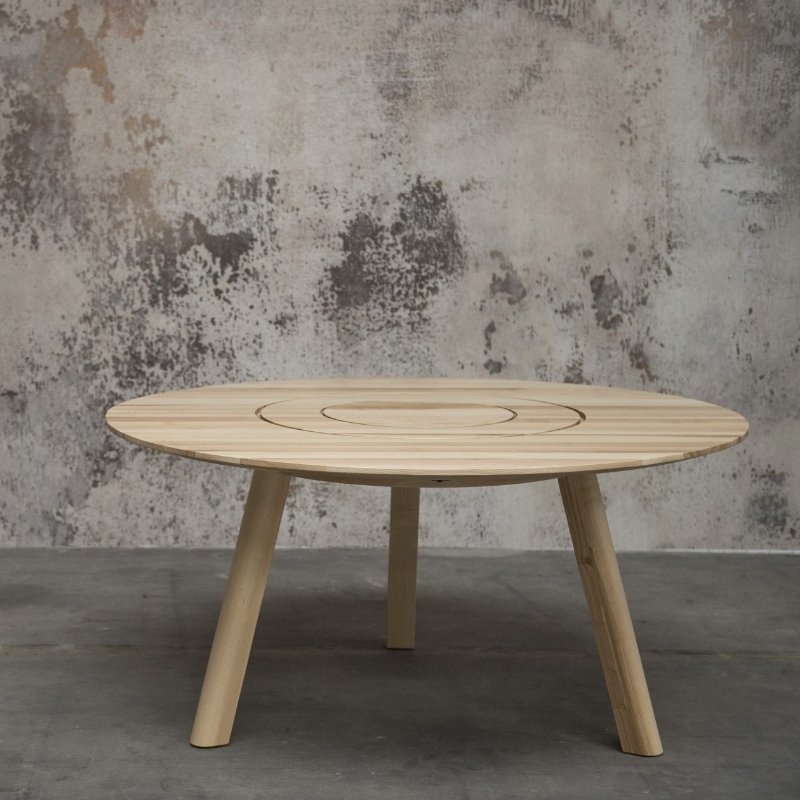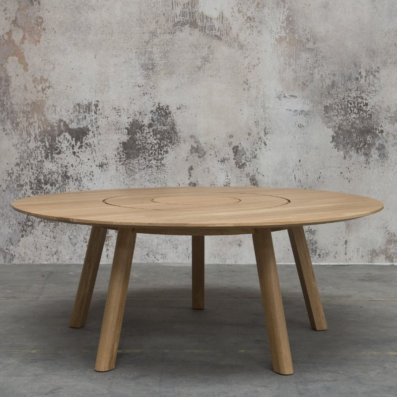 Tafel BuzziPicNic Round, de eerste indoor picnic tafel inzetbaar als ronde vergadertafel of als werktafel. Aan een ronde tafel verloopt de uitwisseling van ideeën efficiënter en is iedereen gelijkwaardig. De ronde tafel is gemaakt van massief hout en het tafelblad is uitgevoerd in 2 delen. Dit maak het vervoeren van de tafel makkelijker.