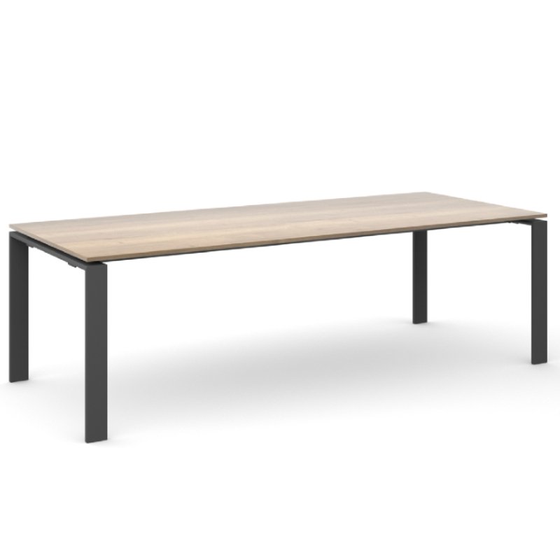 Tafel Cube is de ideale tafel voor de kantoor- en vergaderruimte. De stalen poten en het zwevende tafelblad geven deze tafel extra uitstraling. Het tafelblad is uitgevoerd in melamine Halifax eiken en is voorzien van een tastbare nerfstructuur. Daardoor lijkt het blad van echt hout en heeft het wel de uitstraling maar niet het onderhoud dat bij massief hout komt kijken. De stalen poten zijn antraciet van kleur.