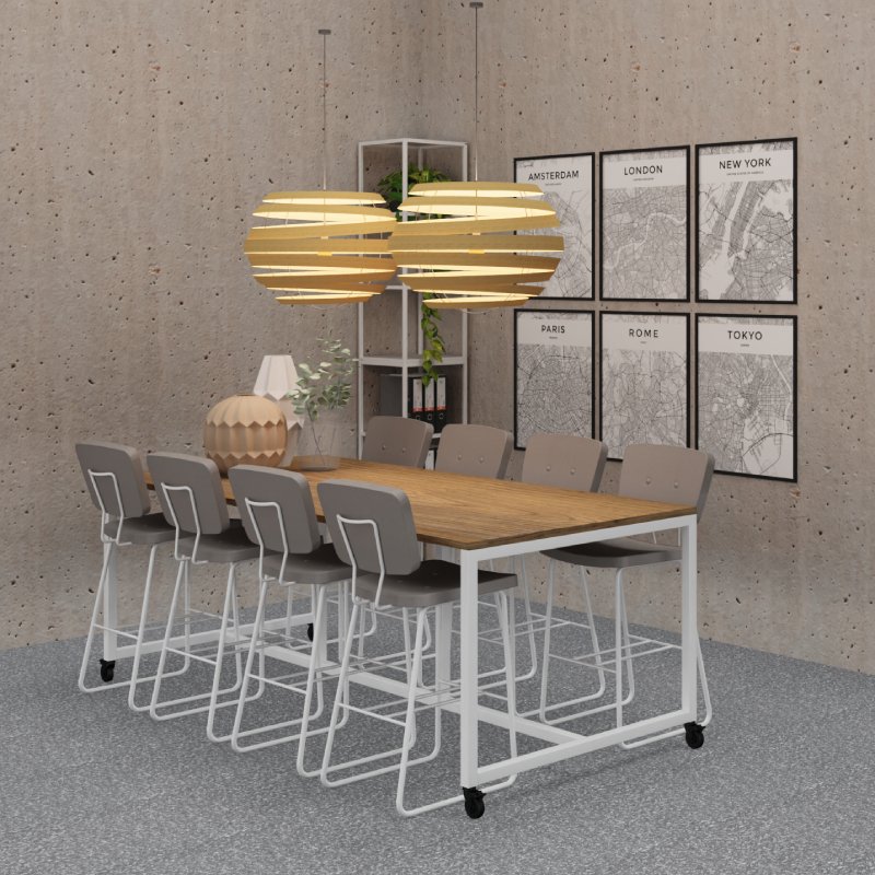 Deze specifieke vergadertafel heeft een vaste hoogte van 90cm maar is ook verkrijgbaar als Tafel Move recht van 75cm hoog en als Tafel Move recht van 110cm hoog. Combineer de kantoortafel met bijpassende Forza krukken of krukken uit de Oscar / Carvi collectie.
