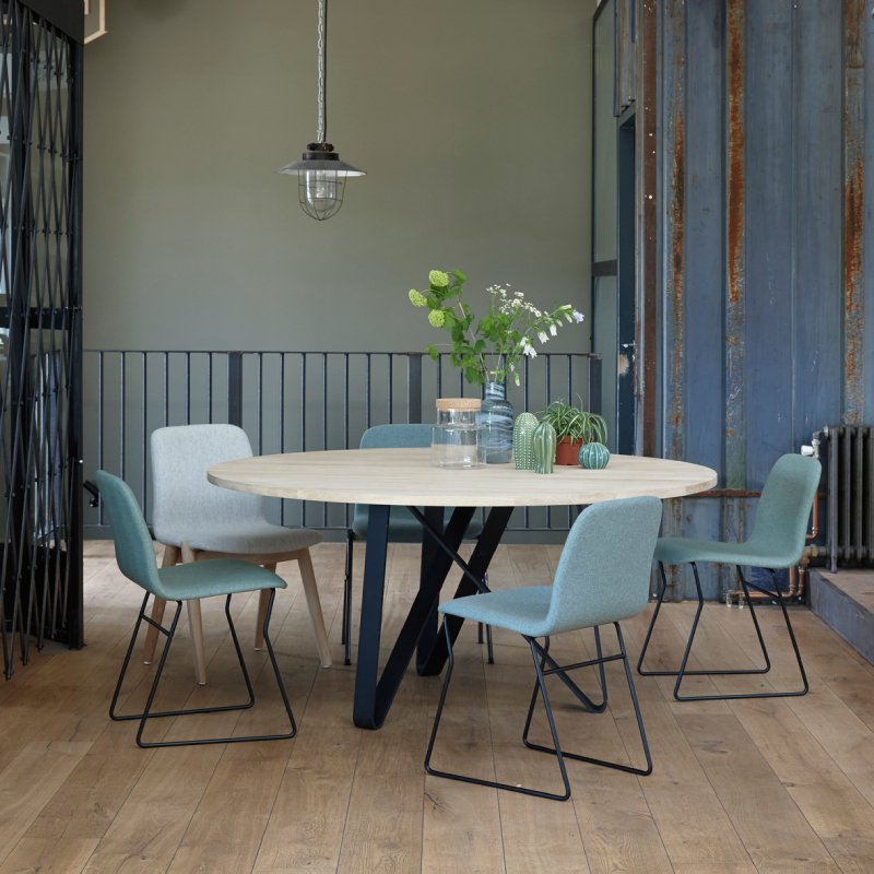 De massief eiken houten tafel is behandeld met Woodlock, hierdoor krijgt de tafel een beschermlaag waarbij de natuurlijke uitstraling van het hout wordt behouden. Het hout lijkt onbehandeld, maar krijgt wel een stevig slijtvast pantser. Het onderstel van deze stevige ronde tafel is mogelijk in verschillende kleuren. Zo kunt u heel eenvoudig de uitstraling van de tafel bepalen, zodat deze bij het interieur past.