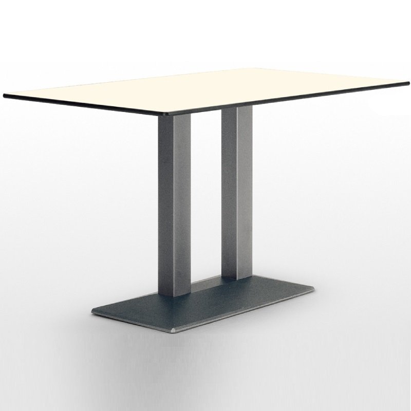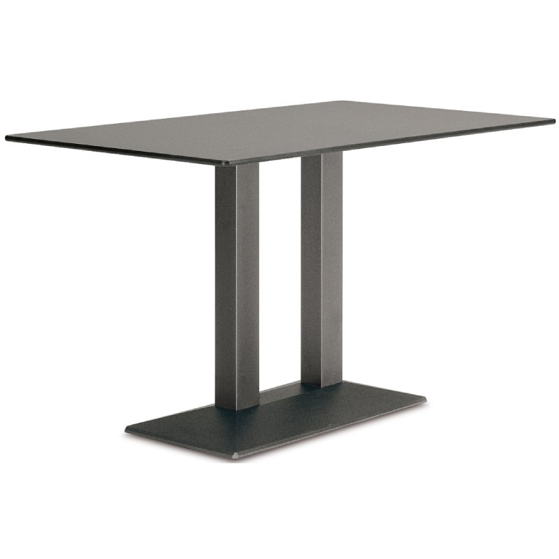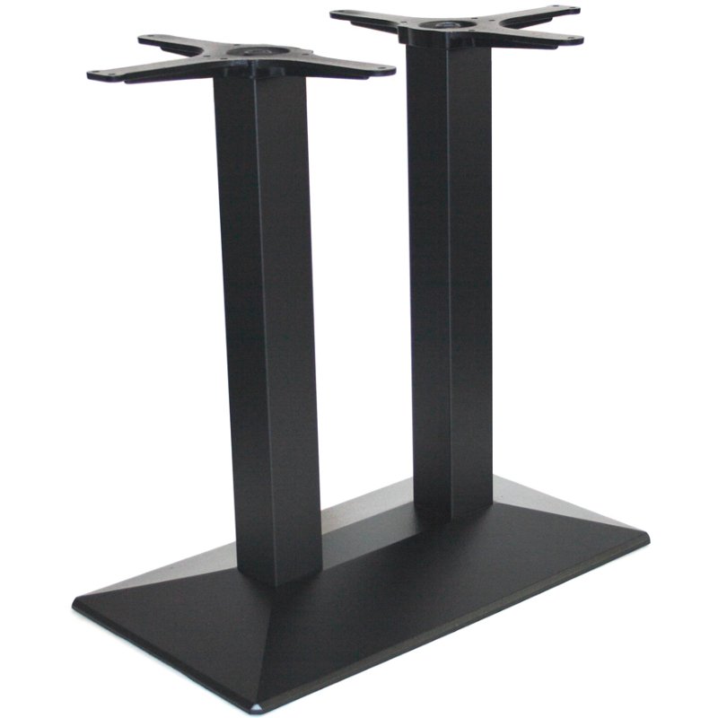 SC249 is een stabiel onderstel voor een tafel. Het onderstel is voorzien van een dubbele kolompoot. De zware rechthoekige voet is van gietijzer met 2 vierkante kolommen van ieder 8x8cm. Het tafelonderstel heeft een hoogte van 73cm en heeft gietijzeren bladkruizen voor het tafelblad. De voetplaat van de tafelpoot is ook van gepoedercoat gietijzer. Hierdoor heeft deze een structuur en niet volledig glad.
