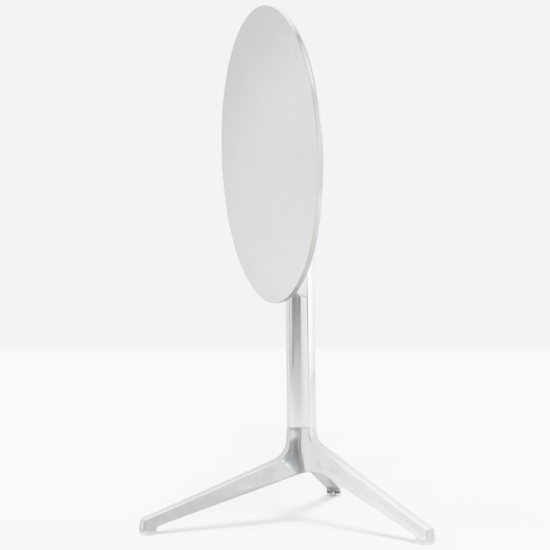 Het aluminiumonderstel is mogelijk in diverse kleuren en kan ook gekozen worden met een coating zodat het onderstel geschikt is voor buiten. Het onderstel is 73cm hoog en de kolompoot heeft een diameter van 6cm. De 3-teens voet heeft afmeting van Ø66cm