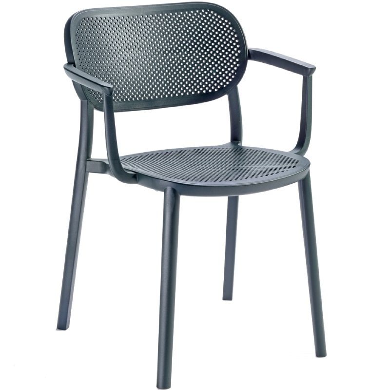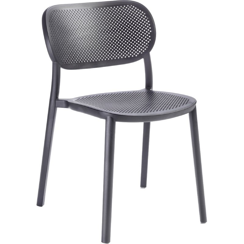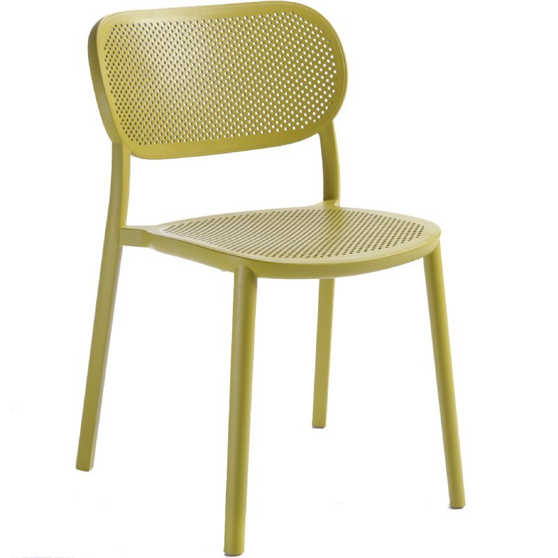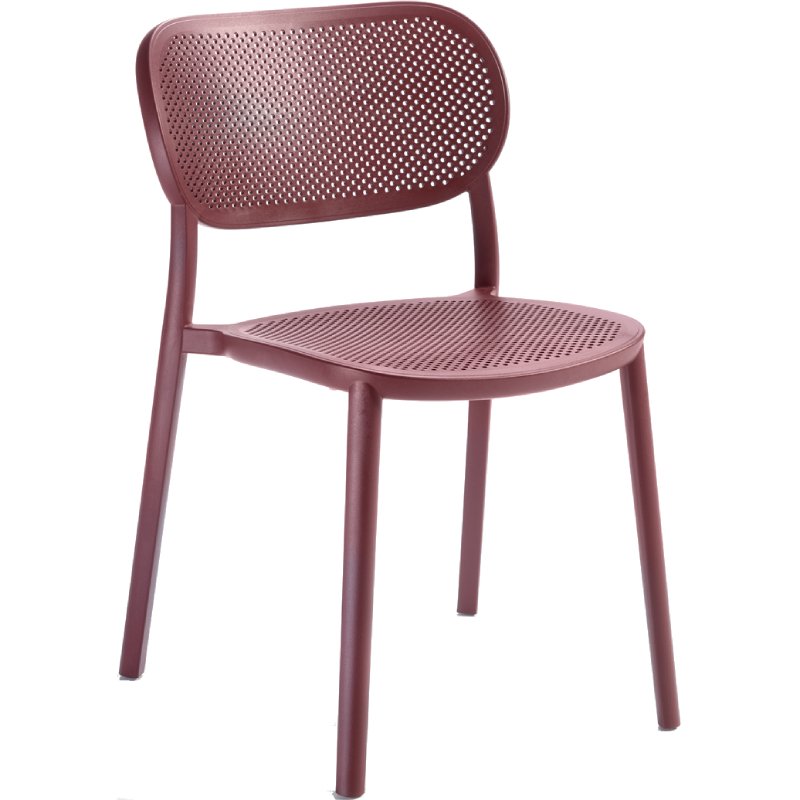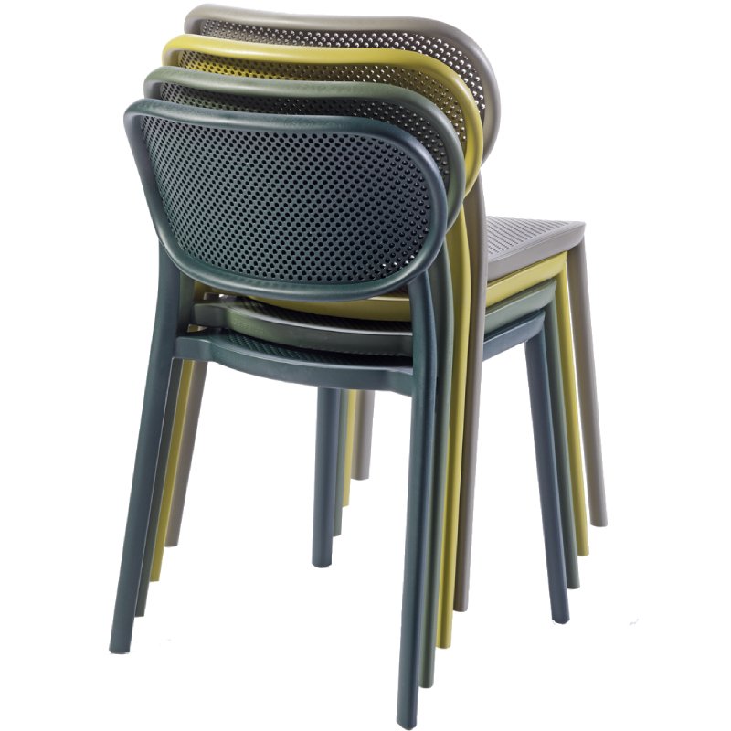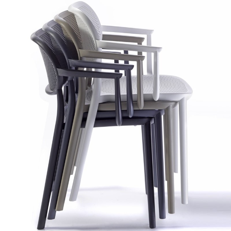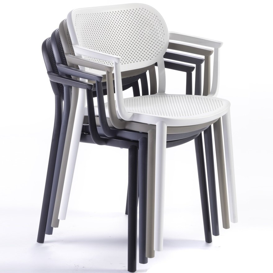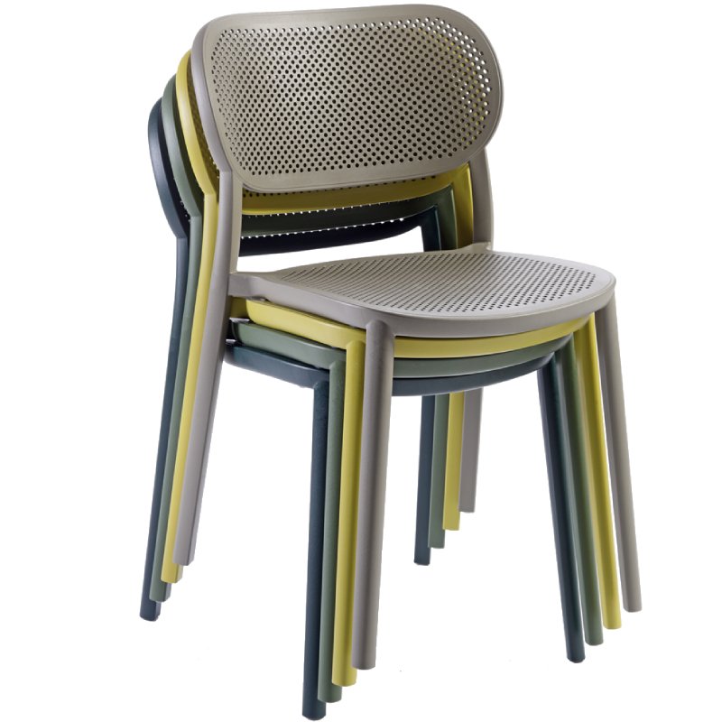 Hailey is het perfecte buitenmeubilair, verkrijgbaar in diverse kleuren en stapelbaar tot 6 stuks. Door de gaatjes in de zitting valt regenwater direct op de grond, waardoor de stoel snel droogt.