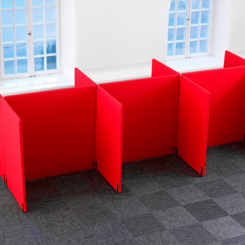 Deze akoestische werkplek absorbeert omgevingsgeluiden en zorgt voor een prettige werkomgeving. Deze akoestische unit is voorzien van ritsen aan beide kanten van de schermen waardoor de lengte van de booth uitgebreid kan worden en meerdere werkplekken gecreëerd kunnen worden.