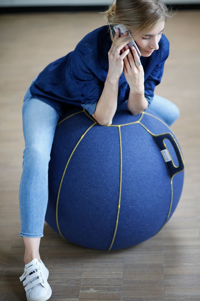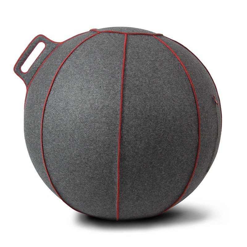 De vilten zitbal heeft aan de binnenkant een sterke en naadloze Pht vrije PVC luchtbal. Deze is gemakkelijk zelf op te pompen door middel van het meegeleverde tuitje, deze past op elke fietspomp. De bal wordt omhuld door een hoogwaardige vilten stof en netjes gesloten door een blinde rits. Het handvat zorgt ervoor dat de zitbal makkelijk verplaatst kan worden, de subtiele ring aan de onderkant voorkomt wegrollen. De vilten stof heeft stiknaden in een contrasterende kleur en zorgt voor een speels effect.
