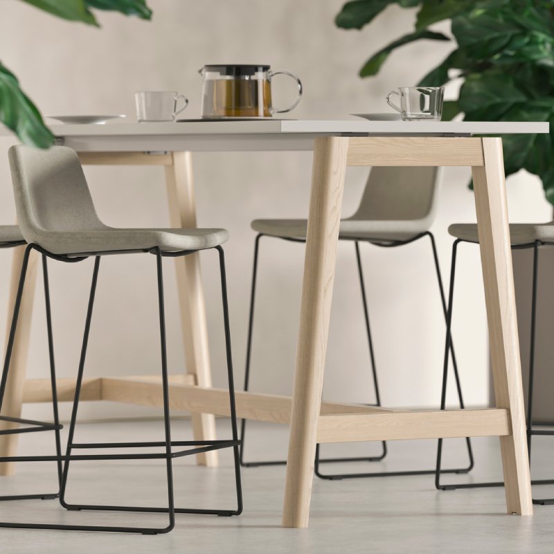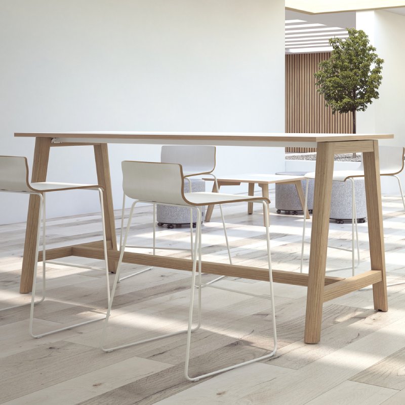Ontdek de stijlvolle hoge tafel Nova Wood, perfect voor open kantoorruimtes. Deze multifunctionele tafel heeft vier stevige, houten poten die niet alleen stabiliteit bieden, maar ook een warme, natuurlijke uitstraling hebben.