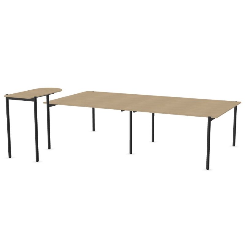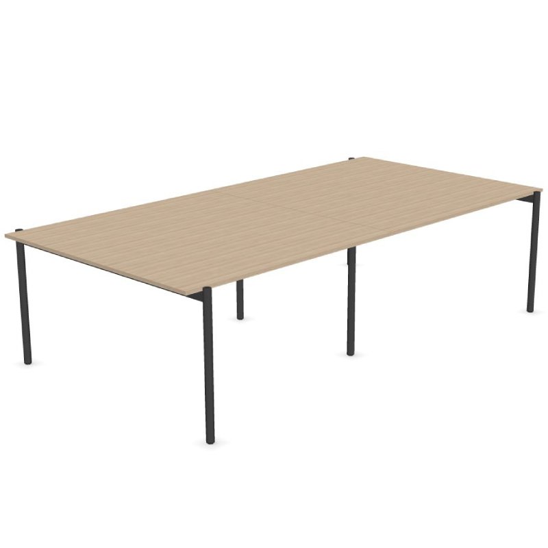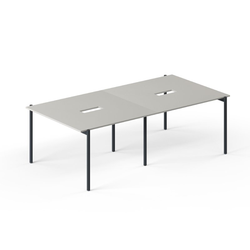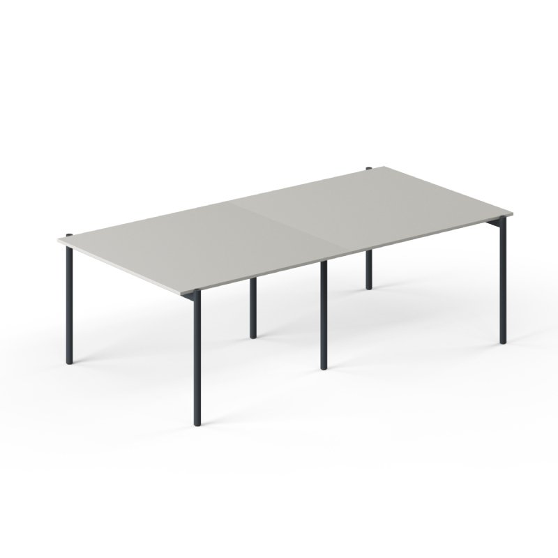 Deze rechthoekige tafel bestaat uit twee vierkante tafels. Je kunt ook gerust nog een vierkante tafel ernaast plaatsen om een uitgebreide vergadertafel te creëren voor grotere bijeenkomsten. De modulaire opstelling maakt flexibele ruimteaanpassingen mogelijk.