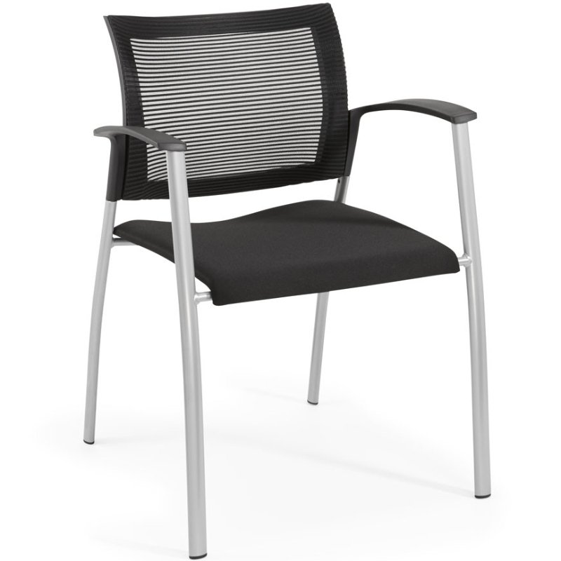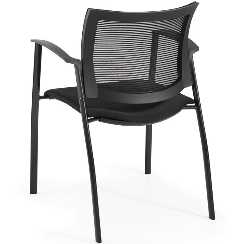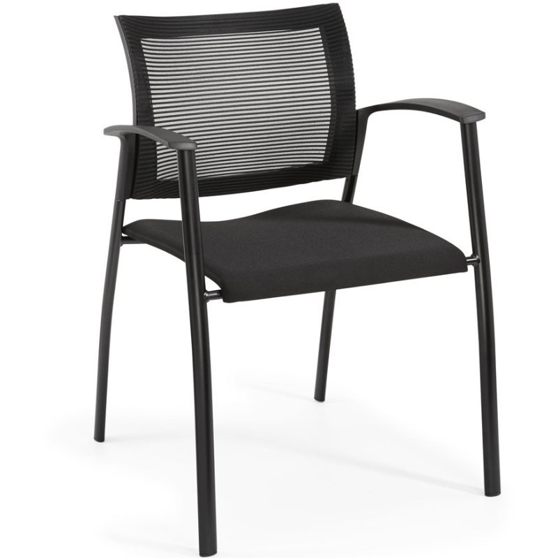 Vergaderstoel 802 is een comfortabele stoel met een gestoffeerde zitting en een netbespannen rugleuning. De vergaderstoel met armleggers heeft een volledig zwarte zitting en rugleuning. Het frame van de vergaderstoel is mogelijk in verschillende kleuren. Combineer de voordelige vergaderstoel met een solide vergadertafel voor een mooie inrichting van de vergaderruimte.