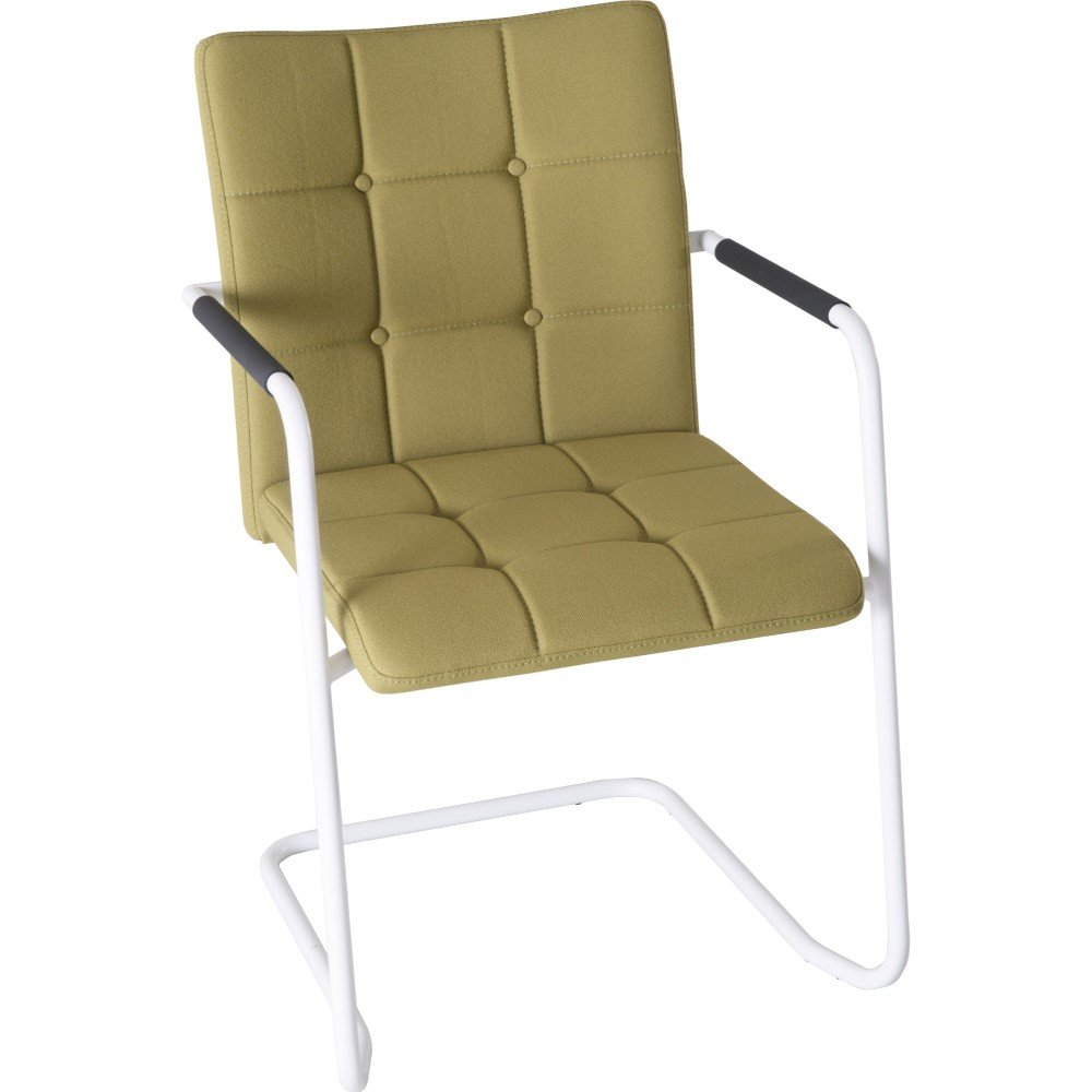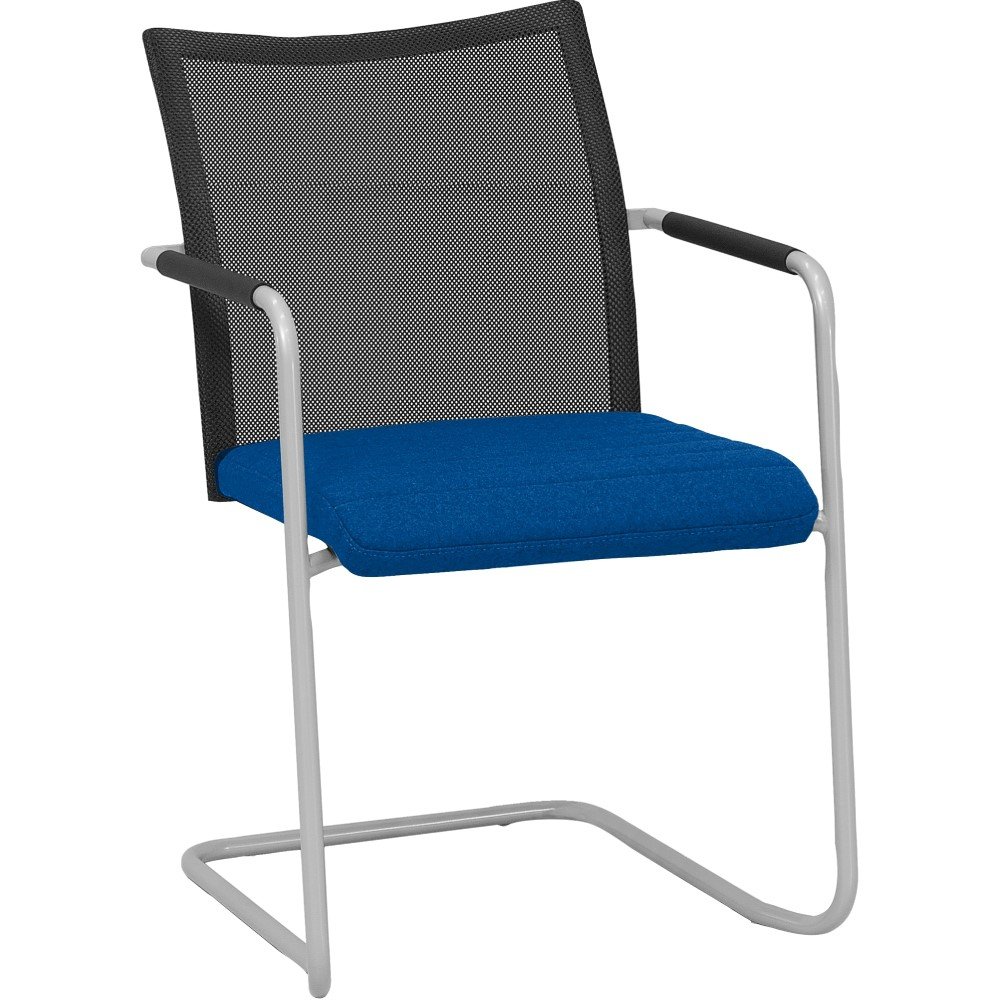 Vergaderstoel Alfa slede met hoge rug heeft een comfortabele zitting wat de stoel een favoriet maakt tijdens vergaderingen. De hoge rugleuning, armleuningen en licht verende beweging door het sledeframe draagt bij aan het zitcomfort. De armleuningen zijn voorzien van een zwart rubberen grip.
