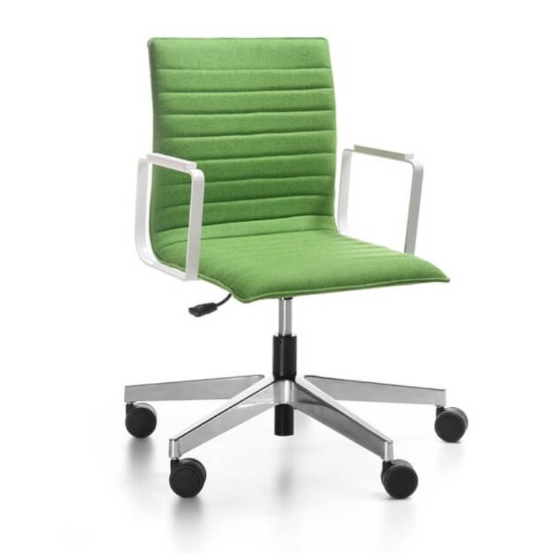 Vergaderstoel Orte 102 is een comfortabele stoel op wielen met rem. De verrijdbare stoel is standaard in hoogte verstelbaar, maar is ook mogelijk met een kantelmechaniek. Voor extra comfort is het toevoegen van armleggers, eventueel met lederen opdek, mogelijk. Kenmerkend aan deze stoel zijn de stiksels in de stoffering.