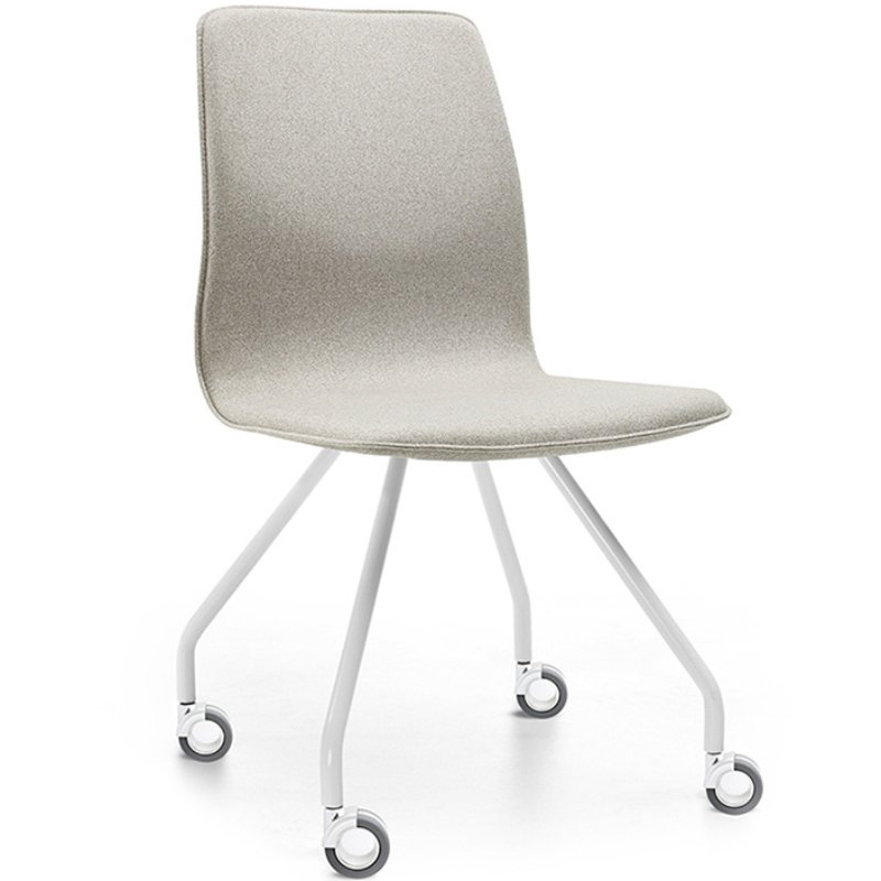 Het verrijdbare kantoor zitmeubel kan prima op diverse vloeren door de keuze van wielen. Harde wielen zijn geschikt voor zachte vloeren, zachte wielen voor harde vloeren en de universele wielen zijn geschikt voor beide.