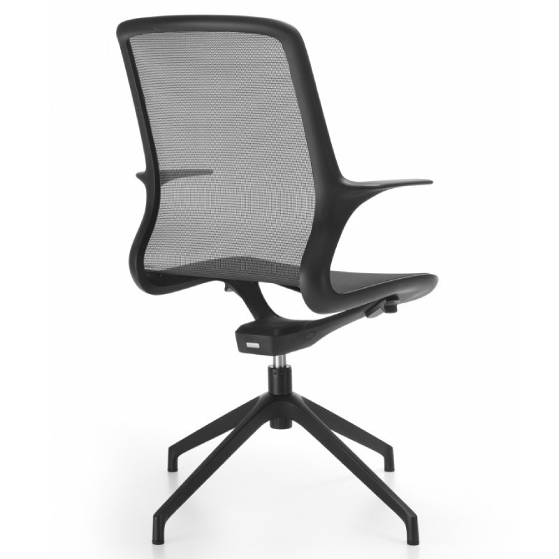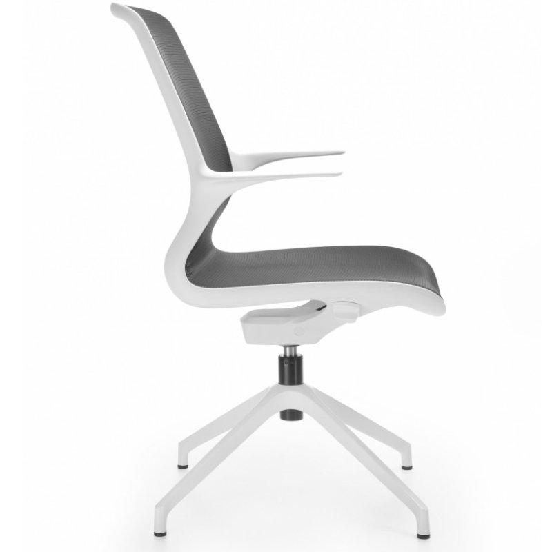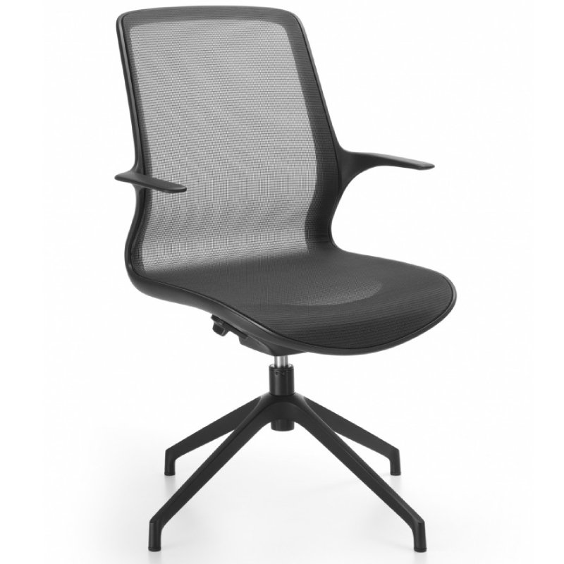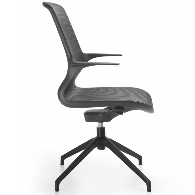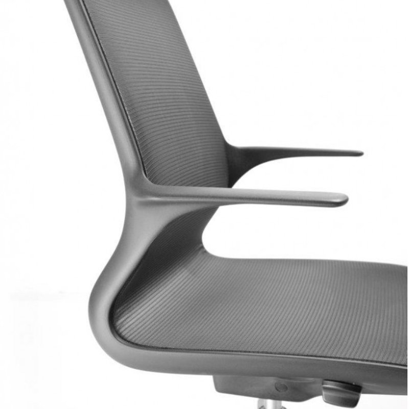 Vergaderstoel Ovidio 4 is een unieke en mooi vormgegeven stoel. Kenmerkend aan de draaibare vergaderstoel zijn de geïntegreerde armleuningen uit de rugleuning en de zitschaal zelf. Deze bestaat uit een hoogwaardige netbespanning of geknopte stof die overloopt in de zitting. Dit biedt een erg prettig zitcomfort voor de gebruiker.