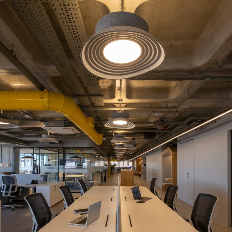Deze geluiddempende hanglamp is ontworpen om de productiviteit op de werkvloer te verbeteren. Bowl combineert namelijk 2 belangrijke elementen van elke werkomgeving, een fijne akoestiek en goede verlichting.