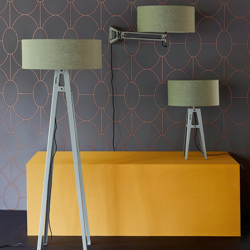 Vloerlamp June heeft een totale hoogte van 155cm. De linnen lampenkap heeft een doorsnede van 55cm en is 25cm hoog. De voet van lamp June is aan de onderkant 34cm breed.
