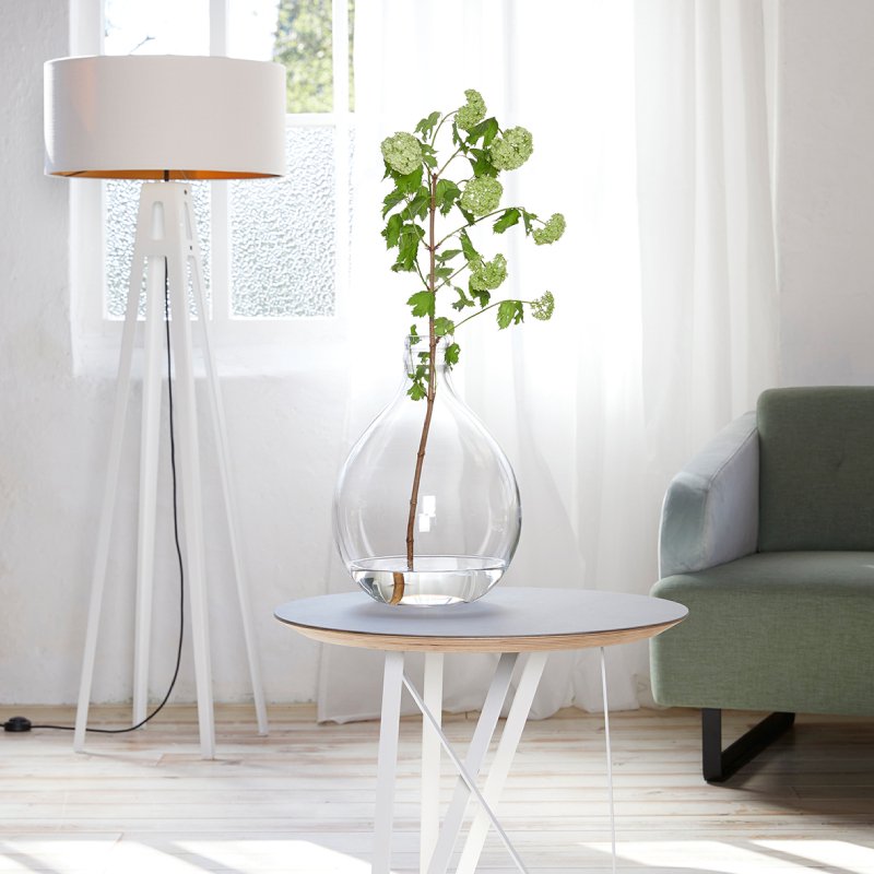 Staande lamp June past in projecten, kantoren, hotels maar ook in huis. Leverbaar in verschillende kleuren. De binnenkant van de lampenkap is standaard wit, maar kan (tegen meerprijs) in goud. Dit geeft de vloerlamp een extra luxueuze uitstraling.