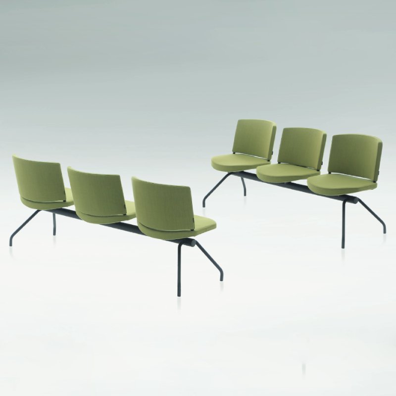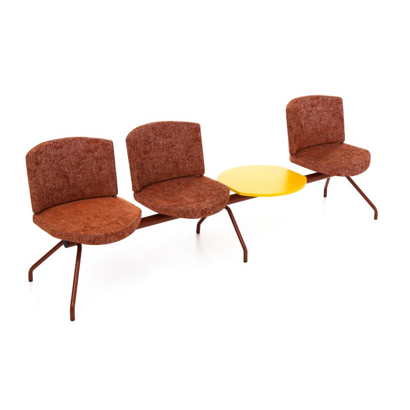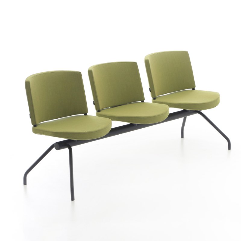De moderne wachtbank is mogelijk als 2-zits, 3-zits en 4-zits. Dit model is uitgevoerd met een 3-zits en is mogelijk met een tafelblad voor eventueel leesvoer en een kopje koffie. Het onderstel bestaat uit een 4-poots frame, mogelijk in diverse kleuren met kunststof glijdoppen.