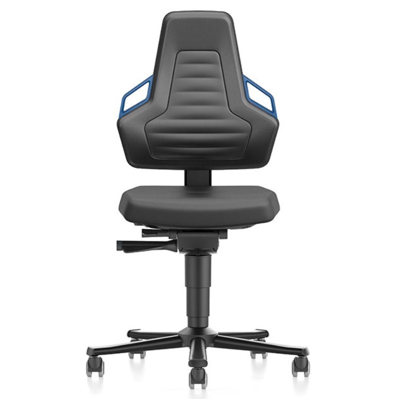 De werkplaatsstoel is voorzien van een handige handgreep, zo kunt u de stoel gemakkelijk meenemen naar een andere afdeling. De handgrepen van Nexxit kunt u kiezen uit 4 verschillende kleuren. Dit is handig om de verschillende stoelen uit elkaar te houden of om een kleur per productie-afdeling te kiezen. Aan u de keuze! U kunt de werkplaatsstoel ook bestellen zonder handgrepen. Het onderstel van Nexxit is standaard met glijders, maar kan ook besteld worden met wielen.