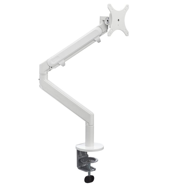 Met de enkele gas-monitorarm kunt u eenvoudig uw beeldscherm op de juiste hoogte instellen. Een scherm op de juiste ooghoogte is essentieel in een ergonomische werplek. Dit model is voorzien van een gaslift, vervaardigd uit staal en komt in drie verschillende kleuren: wit, zwart en aluminium.