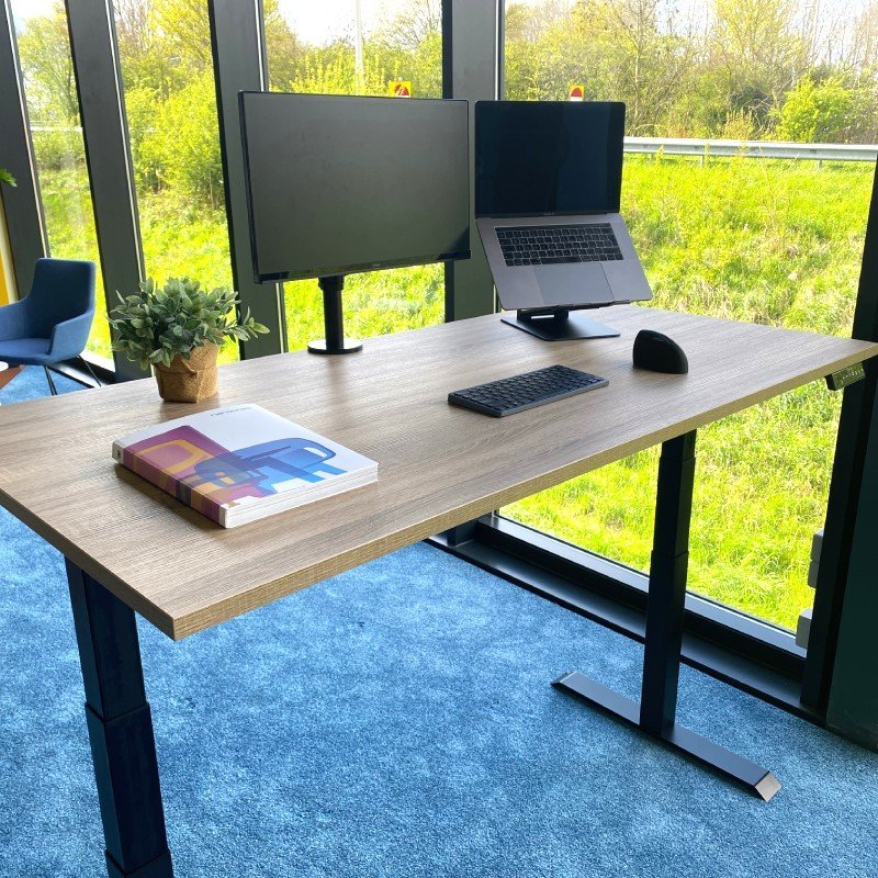 Een modern kantoor kan bijna niet meer zonder zit-sta bureaus. Dit bureau maakt het mogelijk om afwisselend te zittend en staand te werken.
