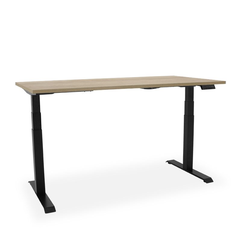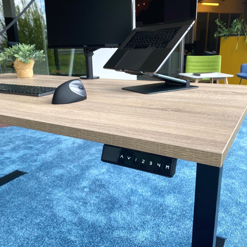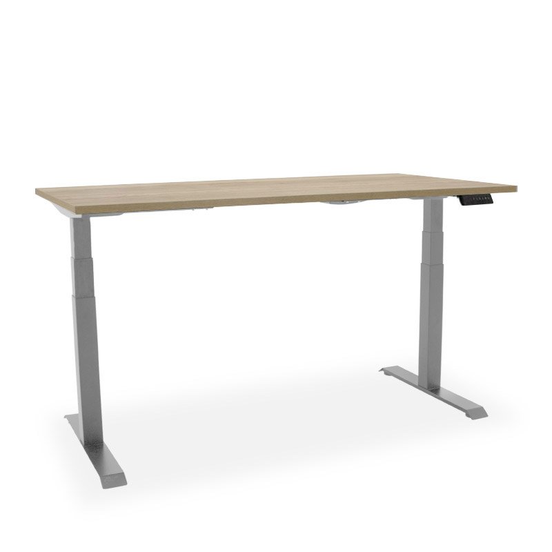 Het elektrisch verstelbare zit-sta bureau is verkrijgbaar in diverse afmetingen en kleuren, met een stevig metalen onderstel en een melamine blad. De in hoogte verstelbare tafel wordt geleverd inclusief memory display om verschillende hoogte instellingen op te kunnen slaan.