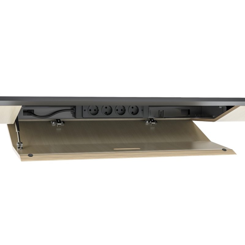 ✓ Voorzien van powerbox, 3x stopcontact 230V (in een compartiment onder het blad)