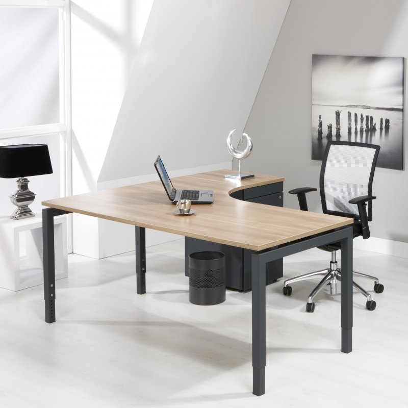 Het bureau in hoekopstelling is mogelijk in diverse afmetingen en kleuren.