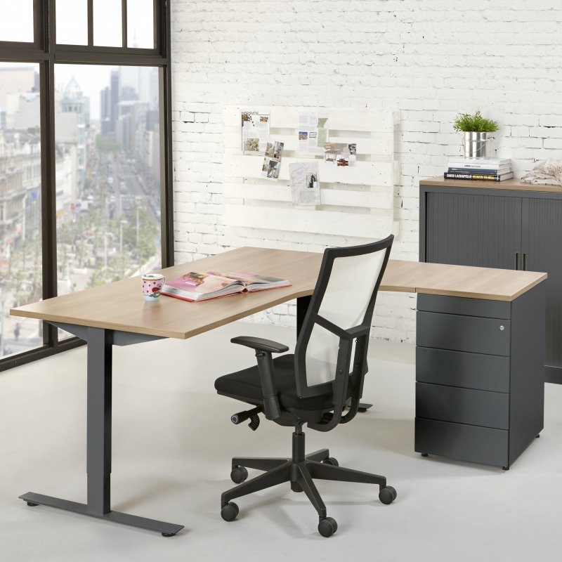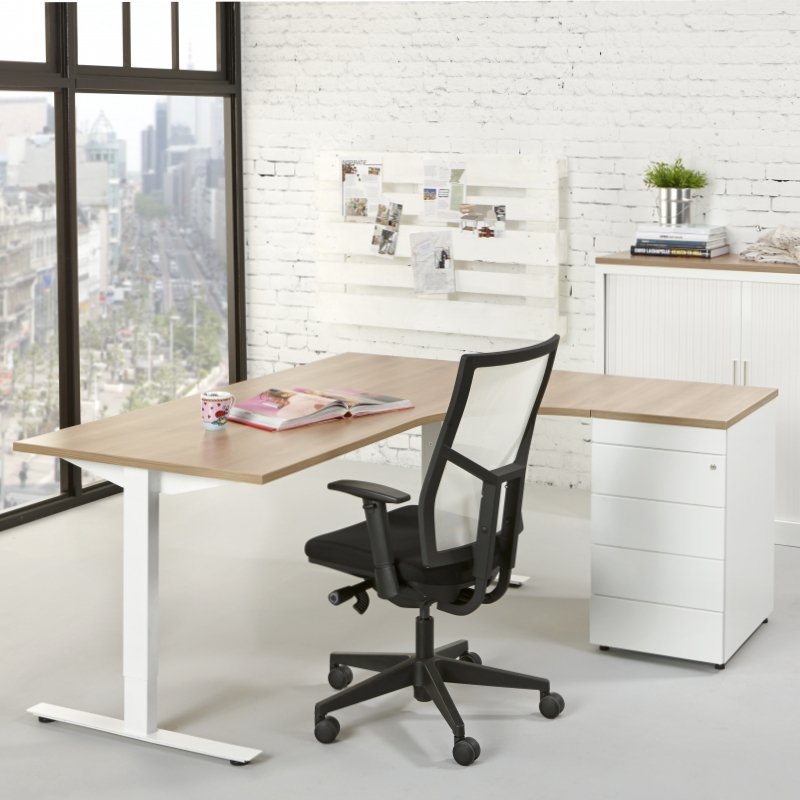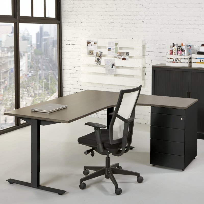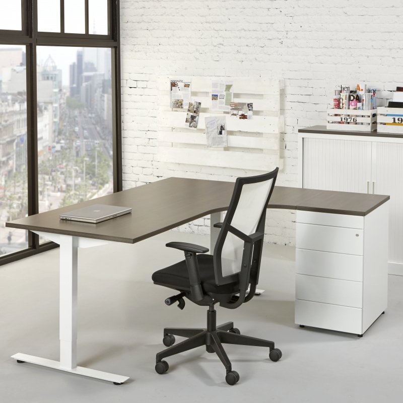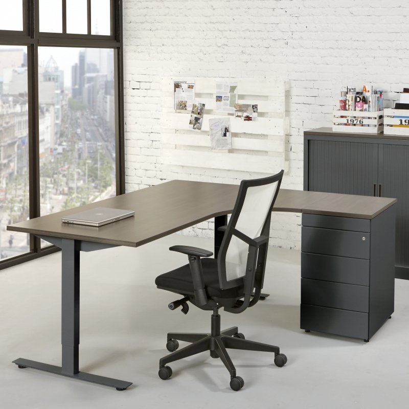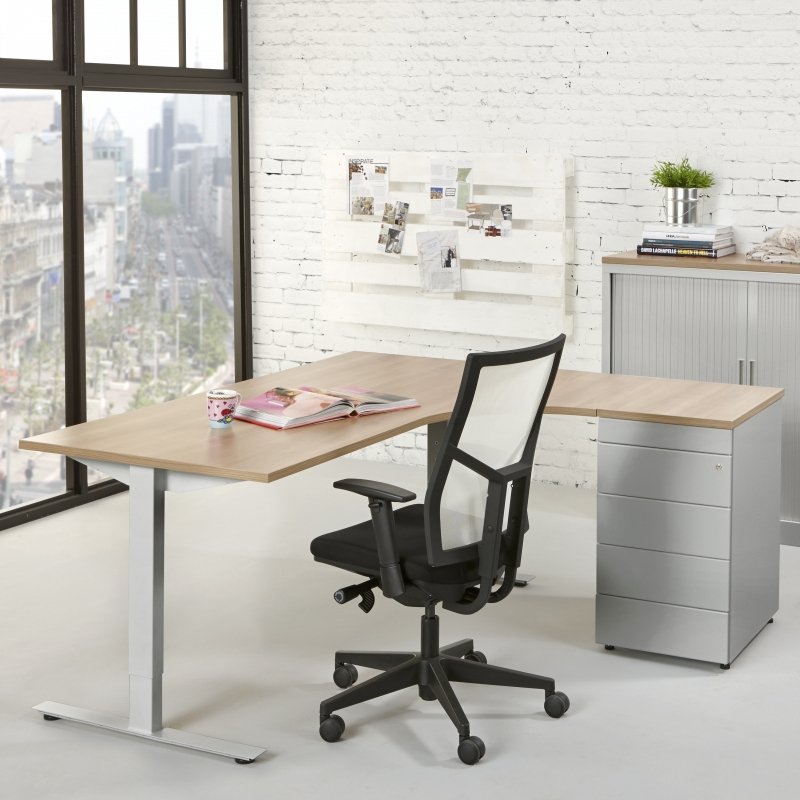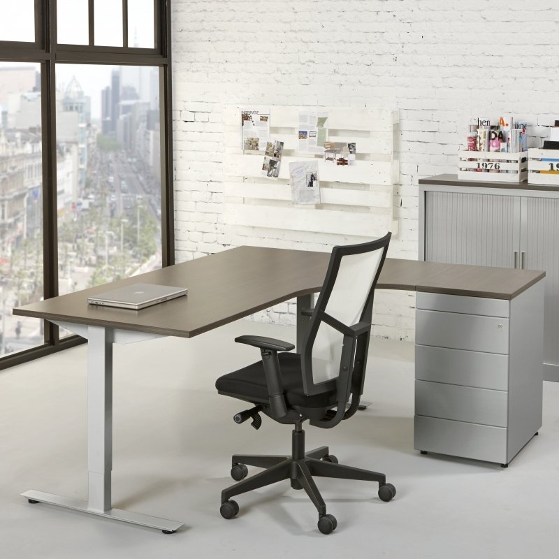De hoek van het zit bureau is mogelijk aan de linker of rechterzijde. Zo kunt u zelf bepalen hoe uw werkplek eruit moet zien zodat deze het beste in de ruimte past.