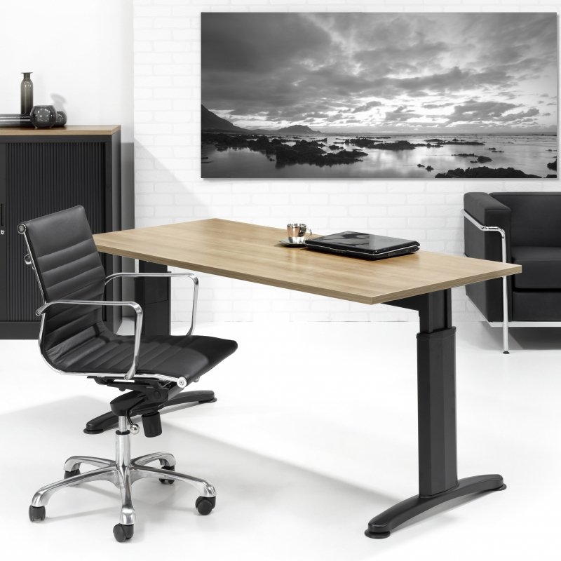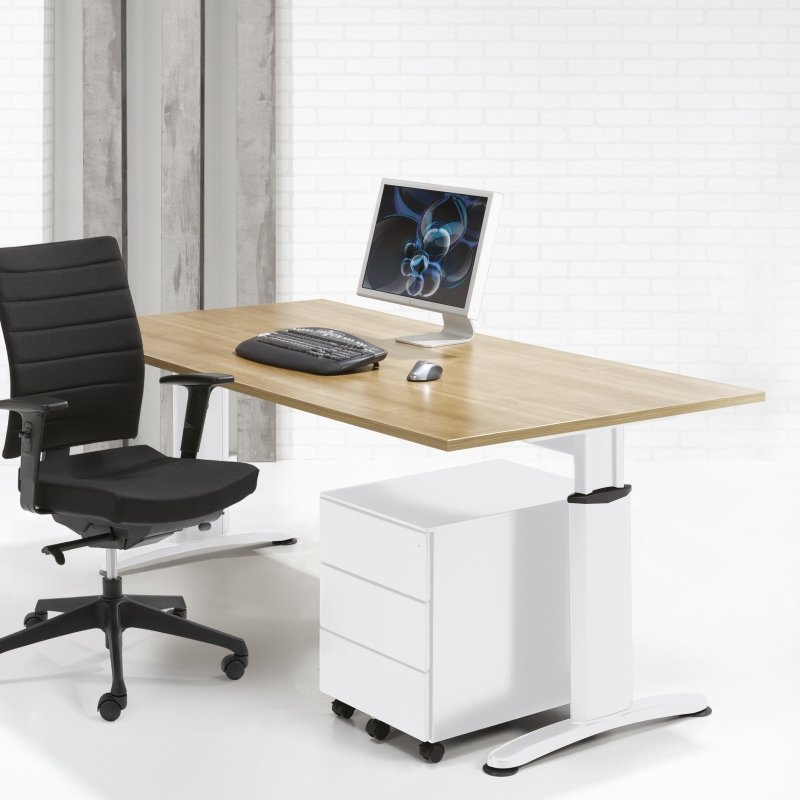 Dit rechte bureau uit de Work 2T-serie is een in hoogte instelbaar bureau van 62 tot 85cm.
