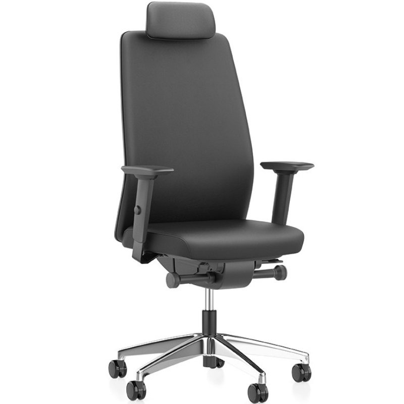 Deze comfortabele bureaustoel met hoge rugleuning is voorzien van een hoofdsteun. De zitting en rugleuning van de slijtvaste bureaustoel zijn gestoffeerd met Stof Era of Rundnappaleder Zwart. De AIMis1 is een uitgebreide bureaustoel die aan alle werkplek eisen voldoet.