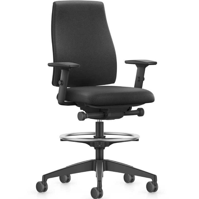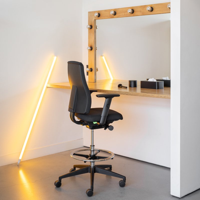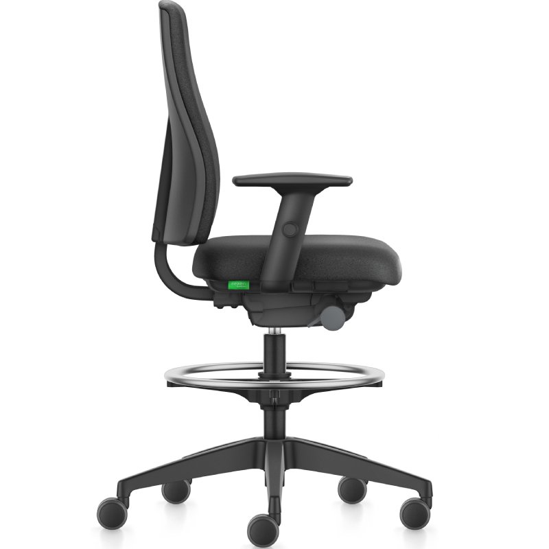 De hoge werkstoel is voorzien van synchroontechniek met gewichtsregeling en zitdiepteverstelling. De ergonomische stoel Se7en LX001 Comfort heeft een gestoffeerde zitting en rugleuning in de stoffering Lucia (Phoenix). Het stevige voetkruis van Se7en LX001 is van kunststof in de kleur zwart. De ergonomische counterstoel is voorzien van universele wielen: mogelijk voor zachte en harde ondergrond.
