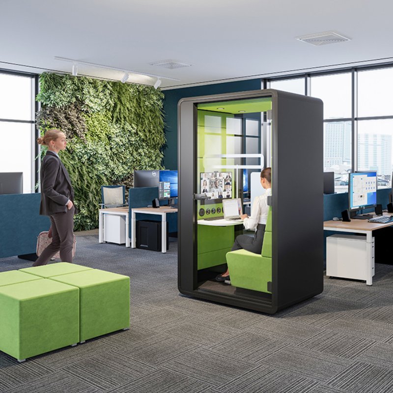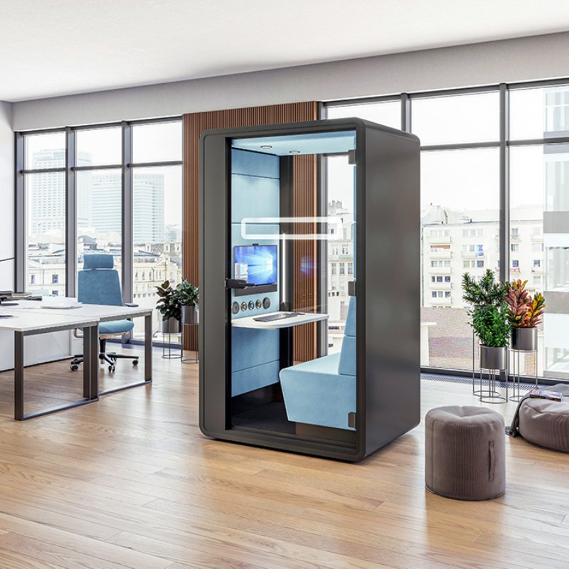 Deze unit biedt een individuele stilte werkplek die zeer geschikt is voor video bellen of als concentratie werkplek. Deze afgesloten cabine bied voldoende ruimte om in alle rust en privacy te werken.