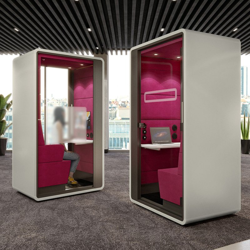 Deze stilte cabine is van alle gemakken is voorzien. Vergaderen op afstand is tegenwoordig de drijvende kracht van het Hybride werken geworden.