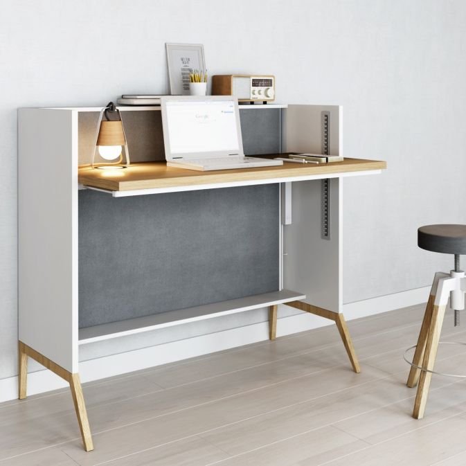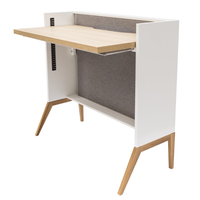 Het flexibele ergonomische bureau past zich eenvoudig aan de gebruiker. Het werkblad is in hoogte verstelbaar van 67 tot 115cm door middel van contragewicht, geheel zonder elektriciteit.