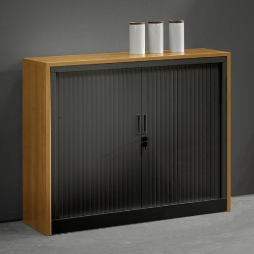 Roldeurkast BE105 is een 105cm hoge kantoorkast. Een handige opbergingsmogelijkheid voor op de werkvloer. De roldeurkast is voorzien van 2 laterale legborden waar u documenten op kunt bergen. Deze hebben dezelfde kleur als de kast zelf. De roldeurkast is leverbaar in 5 diverse kleuren. De deuren van de roldeurkast zijn van kunststof conform de brandklasse M1 (niet brandbaar).