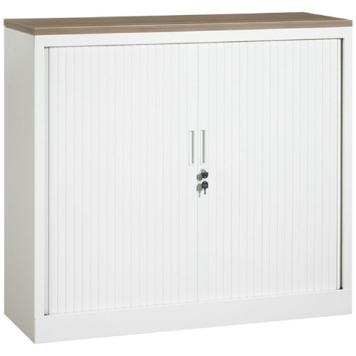 De opbergkast is afsluitbaar door middel van het slot dat meegeleverd wordt met 2 sleutels. Roldeurkast BE105 kan uitgebreid worden met extra opbergingsmogelijkheden. U kunt aan de kast een extra legbord, een uittrekbaar legbord, een uittrekbare opberglade of een telescopische hangmappenlade toevoegen.