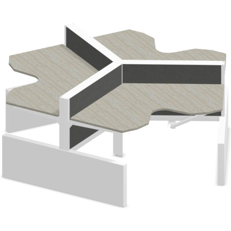 Wingbureau Max Panel-Range bestaat uit 3 werkplekken die door een frame aan elkaar verbonden zijn. Tegelijkertijd zijn de werkplekken ook gescheiden door middel van akoestische bureau scheidingswanden. Op deze wijze wordt er privacy gecreëerd. Deze werkplekken zorgen voor een nette en opgeruimde werkomgeving.