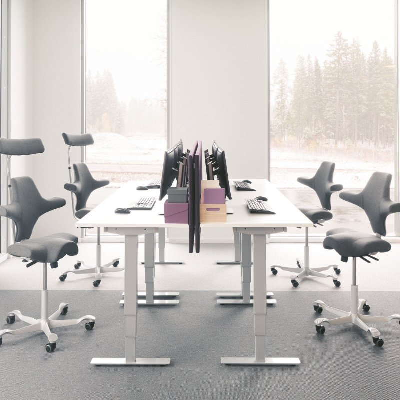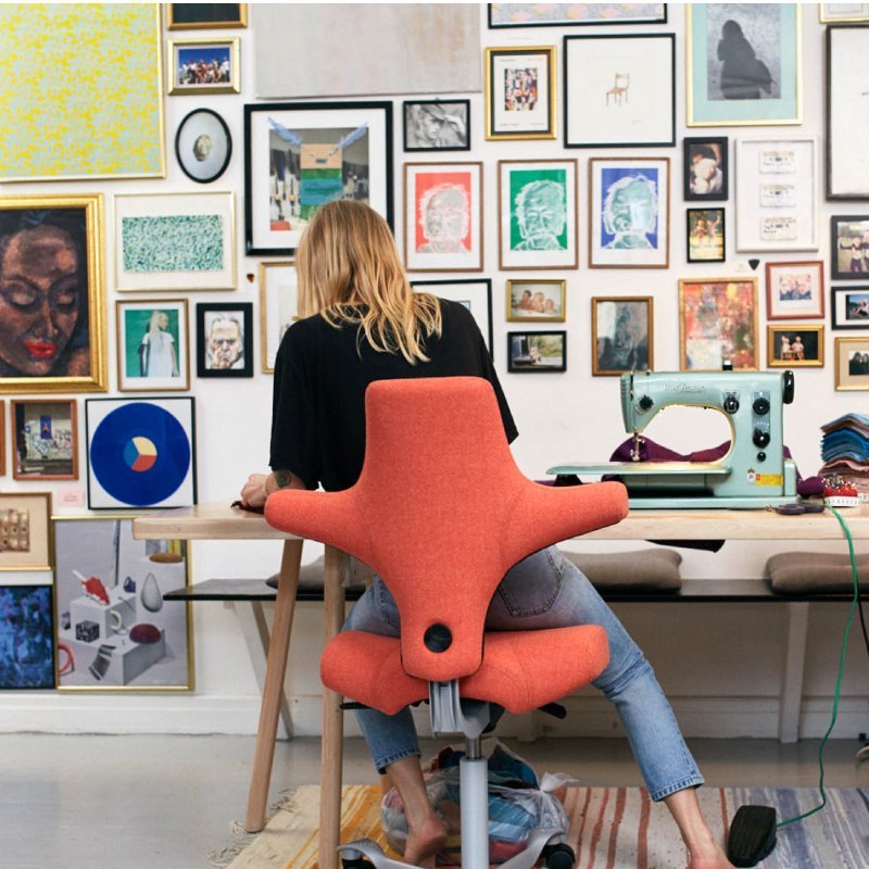 Zadelstoel HAG Capisco 8106 is een comfortabele stoel met een zadelzitting en een rugleuning. De ergonomische stoel is rondom gestoffeerd wat bijdraagt aan het extra zitcomfort. De zithoogte van de zadelzitting kan versteld worden met behulp van een gaslift tussen lage en hoge werkposities. Hierdoor heb je de mogelijkheid om dynamisch te werken terwijl je in balans blijft.